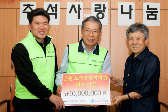 윤용로 외환은행 나눔재단 이사장 겸 외환은행장과 김기철 외환은행 노동조합 위원장 역시 지난 12일 오후 노인복지시설인 은천노인복지회를 찾아 소외계층 어르신들을 위한 복지관 건축 기금 전달 및 송편을 빚으며 담소를 나누는 시간을 가졌으며, 외환은행 임직원과 가족으로 구성된 자원봉사단「KEB사랑나누미」 20여명도 윤용로 은행장과 함께 자원봉사 활동을 실시하였다.은천노인복지회(대표 이병만)는 지역사회의 무의탁 노인과 일반 재가노인의 복지증진을 목적으로 1986년에 설립되어 형편이 어려운 어르신 200여 명을 돌보고 있으며, 현재 주간보호센터, 재가지원센터, 방문요양 및 목욕, 노인돌보미사업, 요양보호사교육, 홍보출판사업 등 다양한 복지사업을 펼치고 있다.더불어 외환은행에서는 추석 연휴기간 모국을 방문하지 못한 외국인 근로자 고객을 대상으로 추석맞이「easy-one 외화송금 외국인 고객 앞 송편증정」행사를 실시한다.