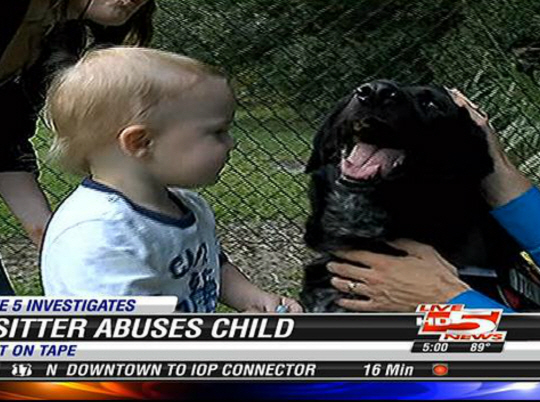생후 7개월된 아이를 학대해 온 보모가 개에 의해 덜미가 잡혔다.