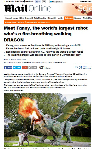 '높이 8.5m 움직이는 로봇'이 소개돼 네티즌들의 눈길을 끌고 있다.