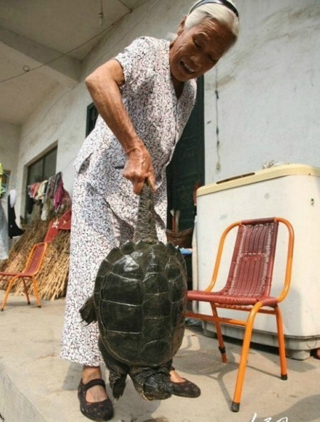 땅을 갈던 한 농부에 의해 발견된 이 500살 거북이는 몸길이 45cm, 무게 6kg으로 조사결과 500살인 것으로 밝혀졌다.