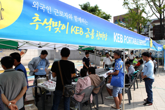 이번『KEB 금융 한마당』은 추석 명절기간 고국의 가족과 떨어져 지내야 하는 다문화가정 및 외국인근로자들을 위로하고 이들의 편리하고 유익한 금융생활을 위한 금융서비스의 일환으로 진행되었다.