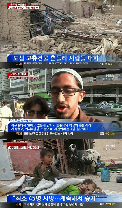 '파키스탄 강진' 소식을 접한 네티즌들은 "파키스탄 강진, 정말 안타깝다", "파키스탄 강진, 더 이상의 사상자가 늘지 않기를", "파키스탄 강진, 어떻게 이런 일이", "파키스탄 강진, 소식 듣고 깜짝 놀랐다", "파키스탄 강진, 아이들 모습 참담" 등의 반응을 보였다. <스포츠조선닷컴>