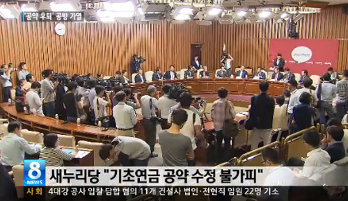 김한길 대표는 기초 노령 연금 공약 후퇴는 어르신들에 대한 배신행위이자 대단한 약속 위반이라고 비판했다. 김 대표는 또 기초 노령 연금은 대통령 의지의 문제라며 지난 정부의 부자 감세만 철회하면 재원은 충분하다고 주장했다.