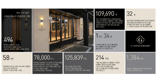 서울과 부산을 200번 왕복하고, 지구를 5바퀴 돌아 완성시킨 고메이494 고메이 494의 '신선하고 건강한 식탁'의 약속을 지키기 위한 지난 1년 동안의 노력은 경이로운 기록의 숫자를 통해 확인할 수 있다. 업계 최초로 업계에서 1년 365일 산지직송 상품을 선보이면서 산지직송 바이어가 신선한 산지 식재료를 공수하기 위해 지난 1년간 전국을 여행한 거리는 78,000km에 달한다. 이 거리는 서울과 부산을 약 200여 차례 왕복한 거리에 해당된다. 산지직송 상품 중 가장 인기를 끌었던 논산 대왕딸기 초도 물량 500팩은 솔드 아웃 되기 전까지의 시간은 1시간 34분을 기록하였다.