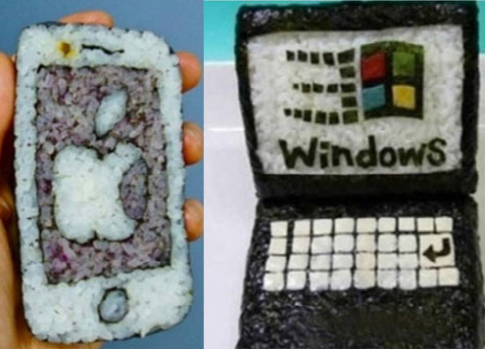 이에 더해 '노트북 김밥'은 검은 색 김으로 노트북 형태를 만들고, 밥의 흰 색으로 키보드를 섬세하게 표현했으며, 노트북 화면에 윈도우 로고를 꾸몄다.