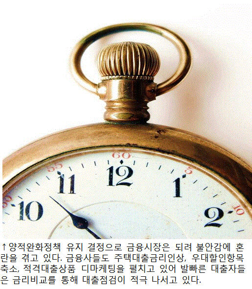 뉴스를 접하고 마음이 조급해진 저금리대환대출자들과 최근 발표된 8.28부동산대책주택담보대출 여파로 전세수요가 매매수요로 전환되면서 아파트매매대출을 문의하는 고객들의 은행별주택담보대출금리비교사이트의 대출문의접수가 추석이 지나고 30% 가까이 증가하고 있는 상태이다. 이러한 금리비교사이트들은 본인이 직접 발품 팔 필요 없이 수십여 군데의 전 금융사의 주택담보대출상품을 고 있어, 최대한 많은 금융사의 대출정보비교를 원하는 고객들로 문전성시를 이루고 있다.