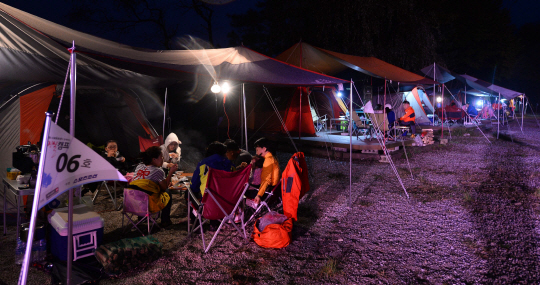 특히 촉촉이 가을비가 내리는 캠핑장은 더욱 운치가 있어 좋았다. 토닥토닥 빗소리를 들으며 가족끼리 맛난 요리를 해먹거나 장작불에 고구마와 군밤을 구우며 얘기꽃을 피우는 모습은 어디에서도 찾기 힘들 행복 그 자체였다. 또 직장 동료끼리 삼겹살에 소주잔을 비우며 단합을 과시하는 모습 속에도 가을밤의 낭만이 넘쳐흘렀다.