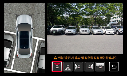 어라운드 뷰와 전방 좌측 뷰, 어라운드 뷰와 우측 뷰는 전방 좌우측을 확대하여 줌으로써 혹시 모르는 턱이나 장애물들을 알아챌 수 있고, 전방 풀 뷰는 전방 부분을 크게 확대해서 볼 수 있어 도로 주행 중에 앞뒤 차간 거리 및 사각지대 진입 차량 등을 한 눈에 볼 수 있다.