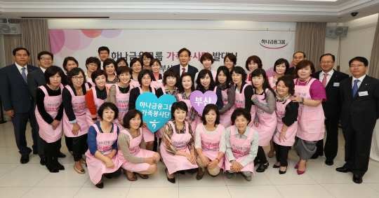 '하나금융그룹 가족봉사단'은 임직원의 배우자, 즉 주부들을 중심으로 거주지 지역 단위별로 조직되었으며, 주부의 강점을 살린 아동 보육, 노약자 케어, 다문화가정 여성의 멘토 등 특화된 봉사활동을 월 1회 이상 펼치고 있다.