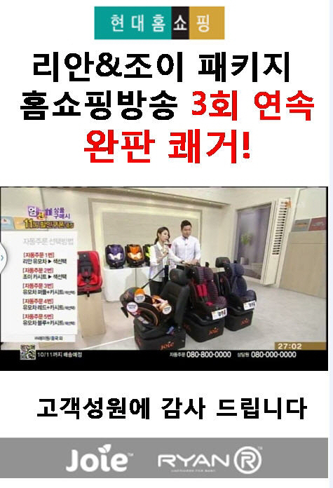 지난 4, 5월 현대홈쇼핑 방송에서 연속적인 완판 기록을 세운 영국 5성급 조이 스테이지스 카시트는 2달만에 또다시 현대홈쇼핑 방송에서 리안 스핀 LX 유모차와 함께 완판 기록을 달성하는 쾌거를 이뤘다. 이미 올초, 소비자가 뽑은 2013년 한국소비자만족지수에서 1위를 수상했던 것을 재입증하는 결과였다.