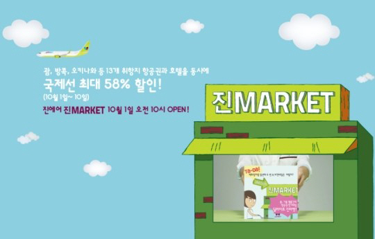 한편 진에어는 국내 항공업계 최초로 백화점 정기세일 개념을 도입한 온라인 마켓인 진마켓을 매년 봄, 가을 두 차례씩 정기적으로 실시하고 있다. <스포츠조선닷컴>
