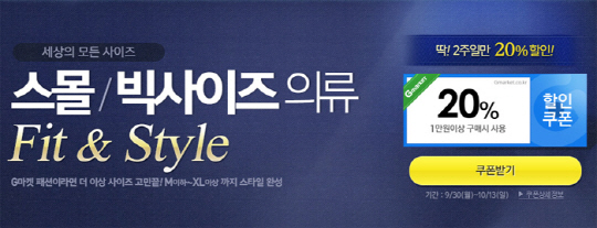오픈마켓 최초로 '빅사이즈관'을 운영했던 G마켓이 '스몰사이즈관'을 추가, '스몰/빅사이즈 의류관'으로 확대 운영한다. 그동안 사이즈 때문에 온라인 쇼핑을 주저하던 고객들을 위한 서비스 카테고리로, 이들 고객을 위한 맞춤형 스타일링까지 제안한다.