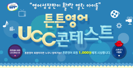 영어교육전문기업 ㈜튼튼영어가 전체 회원을 대상으로 '영어성장판이 활짝 열린 아이들'을 주제로 한 '튼튼영어 UCC 콘테스트'를 진행한다. 10월 25일까지 진행되는 이번 UCC 콘테스트는 '열려라 영어성장판' 캠페인의 연장선으로 튼튼영어 회원들의 영어성장판이 얼마나 열렸는지를 어필할 수 있도록 기획되었다.