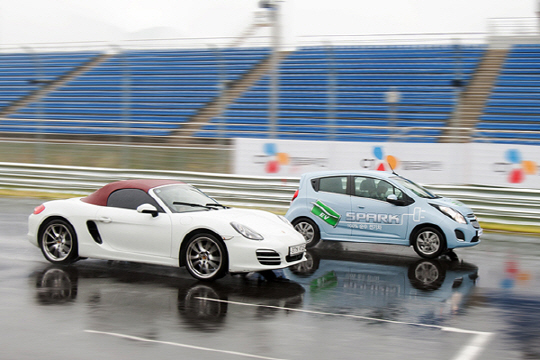 '포르쉐 vs 스파크EV 스피드 레이스'가 행사를 마친 뒤 더 화제를 모으고 있다.