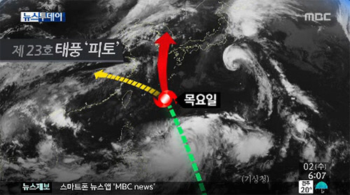 피토는 현재 중심기압 992헥토파스칼의 소형급이지만 모레 오후쯤 중심기압 970헥토파스칼에 강풍반경 350㎞의 중형 태풍으로 발달할 것으로 예측됐다.
