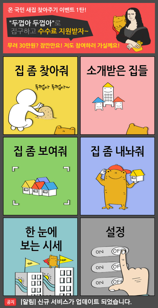'두껍아 두껍아'가 1일부터 본격적인 서비스를 시작하면서 이 앱을 운영하는 드림피어측은 고객 사은행사도 준비했다. 지난 6월부터 테스트 기간을 거쳐 현재 '두껍아 두껍아' 앱의 중개업소 회원은 450여개에 이르고 일반인 고객 회원은 4만여명에 달한다.