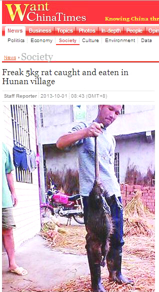 중국의 한 농촌마을에 괴물쥐가 발견돼 화제다.