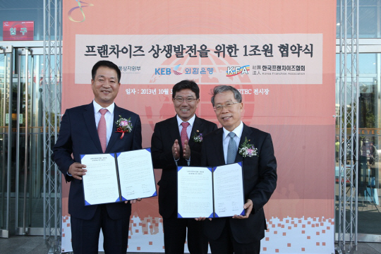 외환은행(은행장 윤용로/www.keb.co.kr)은 3일 SETEC(3호선 학여울역)에서 열린 한국프랜차이즈산업박람회 전시장에서 산업통상자원부 윤상직 장관이 참석한 가운데 (사)한국프랜차이즈협회(회장 조동민/www.ikfa.or.kr)와 『프랜차이즈 창조경제 및 동반성장을 위한 상생 협약』을 체결하였다고 밝혔다.