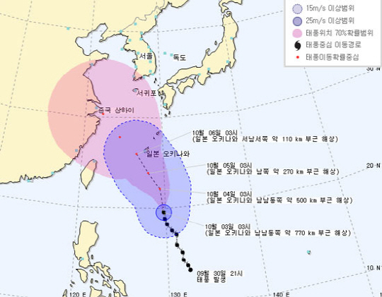 3일 기상청에 따르면 지난 30일 필리핀 마닐라 동쪽에서 발생한 제23호 태풍 피토는 오전 3시 현재 일본 오키나와 남남동쪽 약 770km 부근 해상을 지났다.