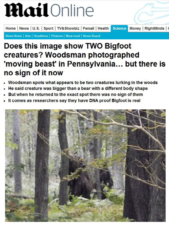 전설의 괴물 '빅풋'을 촬영했다는 사진이 공개돼 화제다.