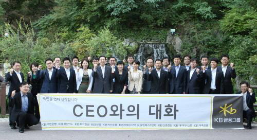 KB금융그룹은 2011년부터 지속적으로 'CEO와의 대화'를 개최하여 직원들의 다양한 의견을 청취, 직원들의 영업현장 아이디어를 경영전반에 반영하는 등 소통문화 확산을 통한 직원들 사기 진작 힘쓰고 있다.