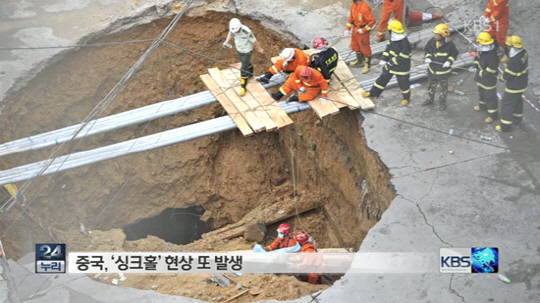 한편 앞선 지난 5월에도 중국 광둥성 선전 화마오 공업단지 앞에서 지름 10m 깊이 4m의 규모로 초대형 싱크홀이 발생하는 등 계속되는 싱크홀 발생에 시민들의 불안감이 고조되고 있다. <스포츠조선닷컴>
