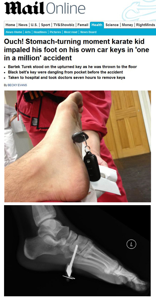 무술 대련을 하던 소년이 발에 차 열쇠가 꽂히는 사고가 발생했다.