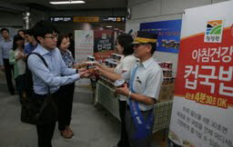 대상 청정원은 지난 달 서울메트로와 함께 출근길 직장인들에게 컵국밥 제품을 제공하는 '좋은아침 캠페인'을 진행했다. 평소 아침밥을 챙겨먹기 힘든 직장인들을 위해 아침 출근 시간대에 직장인들이 몰리는 서울 메트로 5개 역에서 '정통컵국밥' 5,000개를 나눠준 것. 이번 캠페인을 통해 제공한 청정원 정통컵국밥은 전자레인지 등에 가열 없이 컵라면처럼 뜨거운 물만 부어서 바로 먹을 수 있는 제품이다. 이러한 간편성 때문에 특히 20~30대 싱글족 직장인들에게 좋은 반응을 얻고 있다.