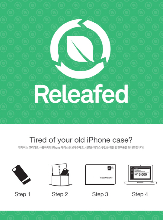 인케이스코리아(대표 양준무)는 고객이 보관 중인 아이폰 케이스를 반납하면 새 케이스 구입시 할인 혜택을 제공하는 '인케이스 릴리프드(Releafed)' 프로모션을 실시한다.