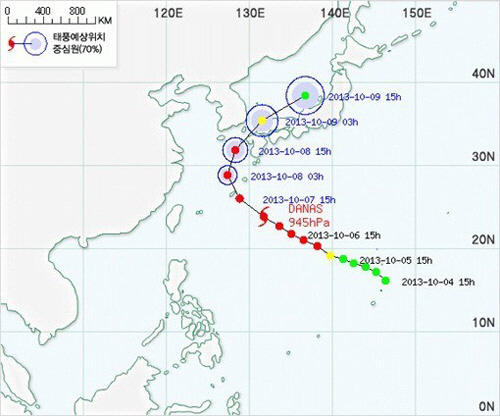 기상청은 "태풍 다나스가 앞으로 얼마나 더 강하게 발달하느냐에 따라 우리나라에 미치는 영향이 달라진다. 오키나와 해역을 지나면서 북동쪽으로 방향을 틀 때의 강도 변화에 주목할 것이다"고 밝혔다.