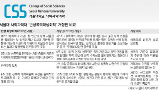 개정된 회칙은 성폭력의 개념을 명확화하고 성폭력의 모호한 범위를 구체화 했다. 이는 담배를 피우는 것까지 성폭력으로 규정하는 건 지나치다는 학내 여론을 수렴한 결과다.