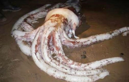 공개 된 사진은 지난 2일 스페인 깐따브리아 해안에서 발견된 오징어 사체의 모습으로, 특히 크기가 9m에 달하며 무게는 180kg에 눈알이 일반사람 머리 크기에 달해 눈길을 끌었다.