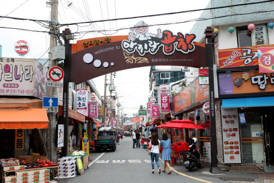 저렴한 가격과 맛으로 내방객의 입맛을 사로잡은 대구 안지랑시장의 곱창거리는 상인들이 똘똘 뭉쳐 탄생시킨 명소다. 맛과 가격을 지키기 위해 곱창 공장 두 곳을 정하고, 돼지 곱창 공동 구매와 곱창 손질법 개발, 위생 관리를 상인회가 함께했다. 시장 내 편의 시설 확충, 호객 행위 금지 같은 규칙을 정해 한 결같이 지켜온 것도 젊은이들이 안지랑곱창거리를 찾게 한 원동력이다.