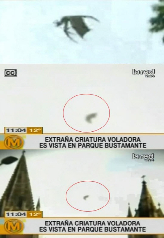 지난 1일 칠레 방송 프로그램 '매티널 라 레드'는 "수도 산티아고의 부스타만테 공원에서 커다란 날개가 달린 괴생명체가 하늘을 나는 모습이 목격됐다"고 보도했다.