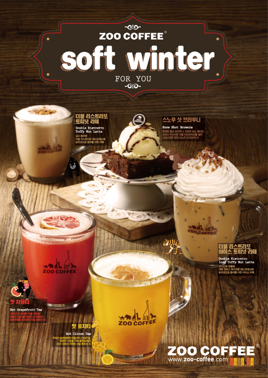 토종 커피전문점 주커피(www.zoo-coffee.com)가 2013 겨울을 맞이해 14일 'soft winter for you' 콘셉트의 다양한 신메뉴 출시와 더불어 신메뉴 인증샷 고객을 대상으로 '3색 도쿄' 프로모션을 11월 진행 할 예정이다.