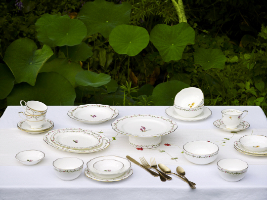 공기, 대접, 오목한 찬기를 포함해 4인 상차림이 가능하며 서양식 상차림을 돕는 수프 그릇과 정찬 접시 등도 포함되었다. '효재의 꽃수 이야기'는 23개(pcs) 한 세트로 가격은 45만원이다.