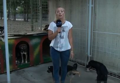 방송 진행중인 여성 리포터의 다리에 개가 오줌을 싸는 장면이 포착됐다.