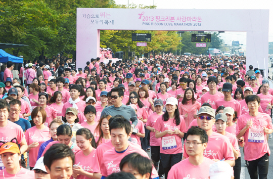아모레퍼시픽(대표이사 서경배)이 주관하고 한국유방건강재단이 주최한 '2013 핑크리본 사랑마라톤 서울대회'가 13일 서울