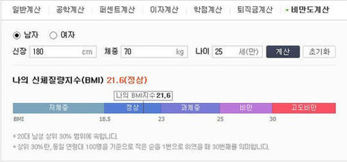 비만도 계산기, 쉽고 편리하게 비만도 측정 "나도 해봐야지"
