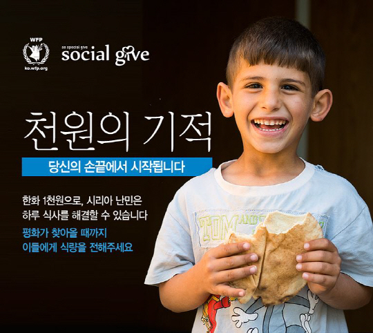 이번에 진행하는 WFP와의 소셜기부는 2년 전부터 계속되고 있는 내전으로 모국을 탈출하여 이라크 캠프에 머물고 있는 19만2000명의 시리아 난민들을 돕는 것이다. 마침, UN이 정한 '세계 식량의 날'을 맞이해 열려 그 뜻이 더 깊다.