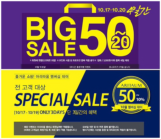 또 아리따움 역시 17일부터 19일까지 10월 멤버십 데이로 지정, 3일간 전 고객을 대상으로 최대 50%에 이르는 스페셜 할인 행사를 진행한다고 밝혔다.