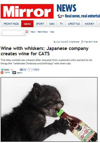 또한 이 고양이 전용 와인에는 알코올이 들어있지 않으며, 포도주스와 비타민 C 등의 성분이 함유된 것으로 알려졌다.