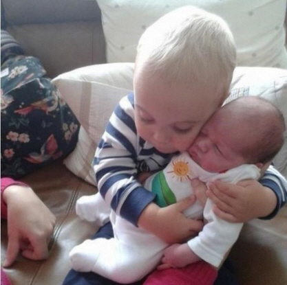 공개된 사진에는 한 남자 아이가 태어난 지 얼마 되지 않은 아기를 포옹한 채 볼을 맞대고 있는 모습이 담겨있다.