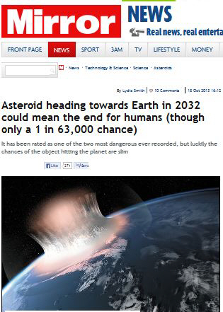 하지만 사실상 충돌 확률은 6만3000분의 1로 매우 희박한 것으로 알려졌다. 즉, 인류가 2032년에도 평범한 하루를 보낼 확률이 99.9984%나 된다는 얘기다.