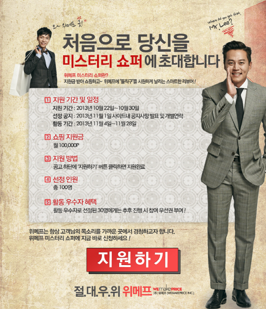 박유진 위메프 홍보실장은 "미스터. 리 쇼퍼' 제도는 고객 중심 경영을 강화하기 위한 위메프의 가장 구체적인 실천방안이다"며 "고객의 목소리를 가장 가까운 곳에서 경청하고 서비스에 반영, 고객만족도 증진을 위해 최선을 다할 것"이라고 밝혔다.