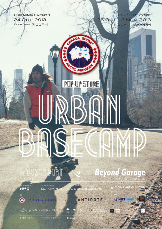 팝업스토어의 전반에는 'CANADA GOOSE URBAN BASECAMP'라는 테마 아래 브랜드 아이덴티티를 경험할 수 있는 요소를 자연스럽게 표현한다. 특히 팝업스토어를 시작하는 24일 목요일에는 7시부터 10시까지 오프닝 이벤트를 진행하는데, 라이브 밴드 '청년들'의 공연과 라이브 그래피티, '구스 인사이더스' 전시, 캐나다 구스를 체험할 수 있는 존이 구성 될 예정이다. 저녁에는 캠프파이어와 디제이 김프로의 플레잉이 이어 질 예정이다.