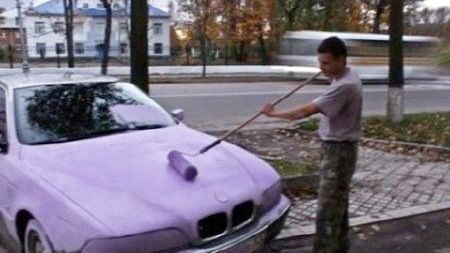 공개된 사진에는 한 남성이 인도에 불법 주차된 차량에 연보랏빛 페인트를 칠하는 모습이 담겨 있으며, 특히 운전석 앞 유리와 자동차 타이어에도 페인트를 칠해 불법 주차 차량에 너무나도 화끈한 응징을 해 웃음을 자아냈다.