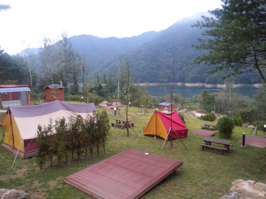 화천군에서는 이곳에 트레킹코스를 만들었다. 나무 한 그루, 풀 한 포기 오솔길의 모습을 있는 그대로 살리고, 길의 폭 또한 최대로 좁게 만들었다. 거의 한 뼘 넓이로, 두 사람이 비켜 가기에도 버거울 사이즈다. 그리곤 '한뼘길'이라는 이름을 붙였다. 아울러 인근 폐교에 캠핑장도 만들었다.