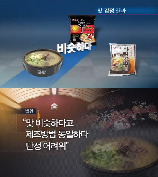 서울중앙지법 민사합의12부(홍이표 부장판사)는 사단법인 한국음식조리인연합 상임대표 등 16명의 감정인에게 신라면 블랙과 이씨네 장도리 곰탕 국물에 대한 맛 감정을 의뢰했다. 그 결과 16명 중 12명이 맛이 유사하다는 판단을 내렸다.