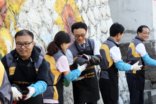 KB국민은행(은행장 이건호/www.kbstar.com)은 10월 23일 직원들이 모은 후원금으로 서울지역 저소득층 200가구에「KB 사랑의 행복보일러」를 후원하고 연탄 나눔 봉사활동을 펼쳤다.